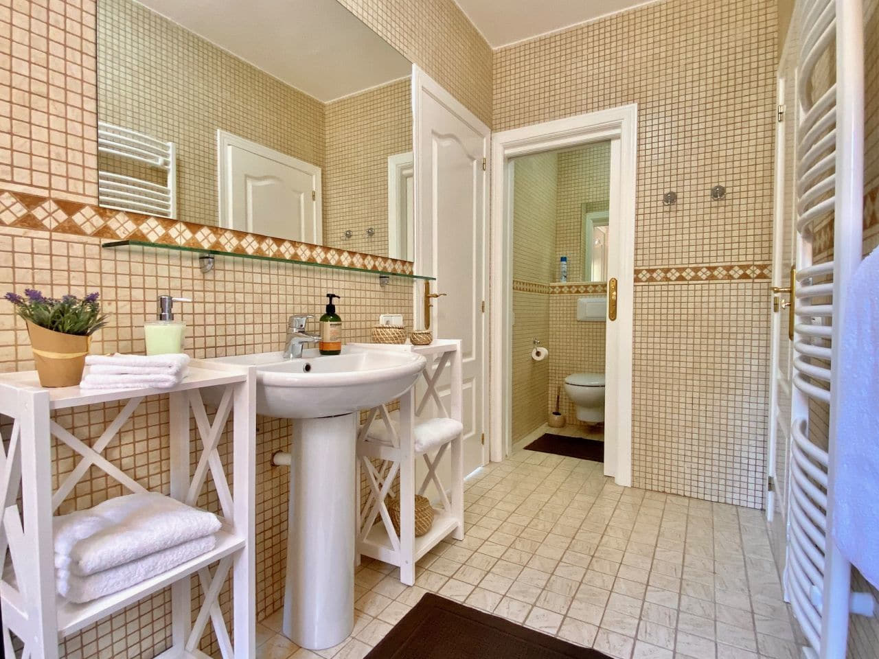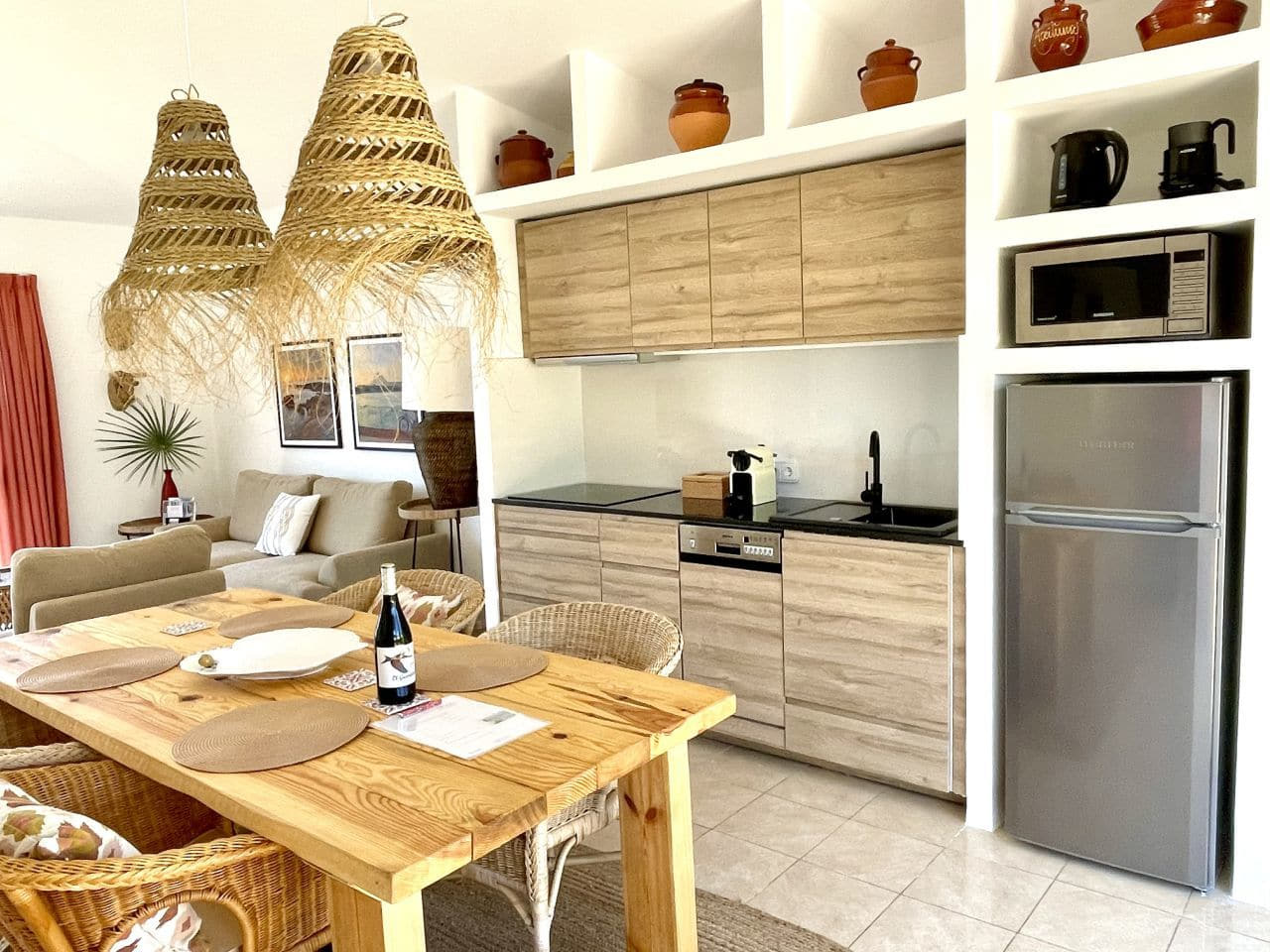 - high-quality furnishing with mostly solid wood furniture