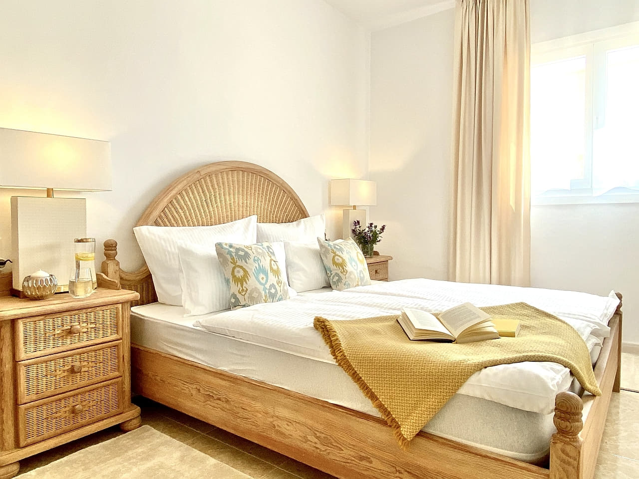 - high-quality furnishing with mostly solid wood furniture